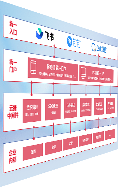 对协作平台提供支持服务,,支持企业应用与协作平台对接,,,包含组织同步、、、、消息集成、、、、待办集成等。。。支持目前主流的协作平台:钉钉、、、、企微和飞书。。